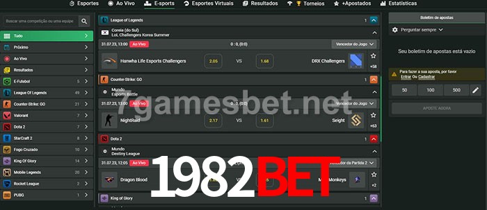 A aposta 1982bet oferece aos jogadores a experiência mais conveniente de apostas em eSports!